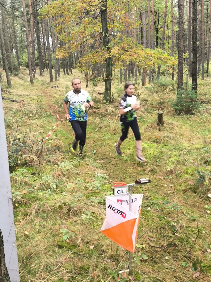 Vyrazili jsme v sobotu dopoledne a v klidu přijeli na shromaždiště okolo jedenácté, dost času na předzávodní přípravu (kromě kávy). Všechny děti měly start blízko, tak to bylo bez stresu. Těm, kteří přijeli poprvé na takto velké závody, jsme vše v klidu vysvětlili a pak je vyslali do lesa, a zvládli to, vrátili se. Je třeba pochválit hlavně Adélku Dvořákovou, poprvé sama a bez fáborků, stejně tak šikovná byla i Hanka, i ona byla poprvé v lese na závodech. O co se méně dařilo dětem, o to více se dařilo trenérce Petře, hlavně v sobotu. Po sobotní klasice jsme vyrazili na ubytování, pro naší velkou skupinu a psa jsme měli zajištěno ubytování ve srubech na Seči, krásné prostorné ubytování a koupání ještě k tomu. A koupali jsme se skoro všichni. Večer objednaný řízek a pak analýza tratí na pokoji, jak to má být. Čekal nás nedělní middle. Terén prakticky stejný, rovina, spousta rýh a moře ostružin.